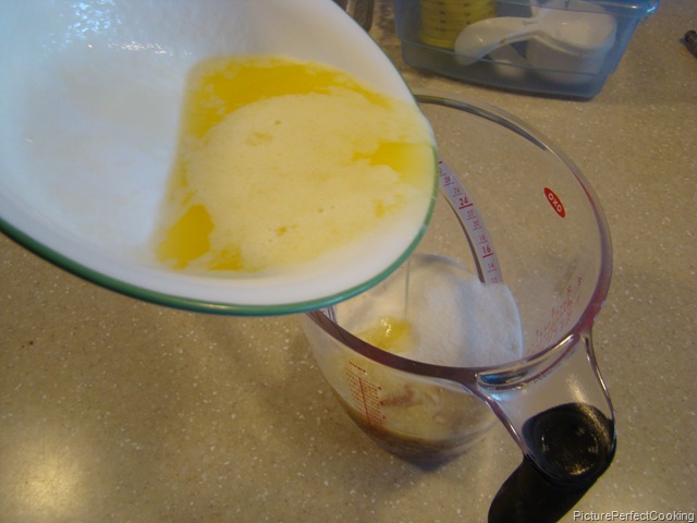 Preheat oven to 350 degrees. Grease a 13×9” baking pan. I use the wrapper from the stick of butter. Combine flour, baking powder, salt & baking soda.
