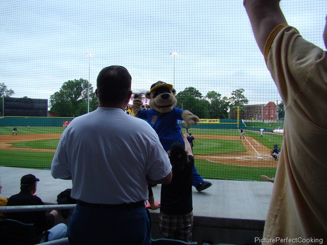 The staff gave away prizes throughout the night. Right above, Axle is throwing t-shirts to the crowd. Some of the other staff used a t-shirt launcher to give them away (C LOVED the t-shirt launcher). All in all, this was great, great fun and I would highly recommend anyone getting away to the ballpark for a game!