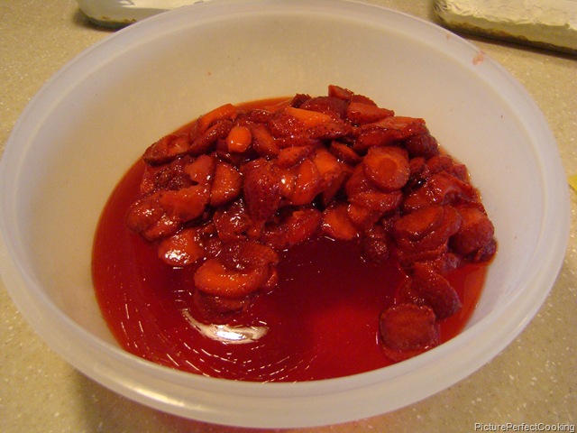Topping: Prepare Jell-O according to package directions. After 1 1/2 hours of fridge time, stir in the strawberries and spread over the cream cheese layer.