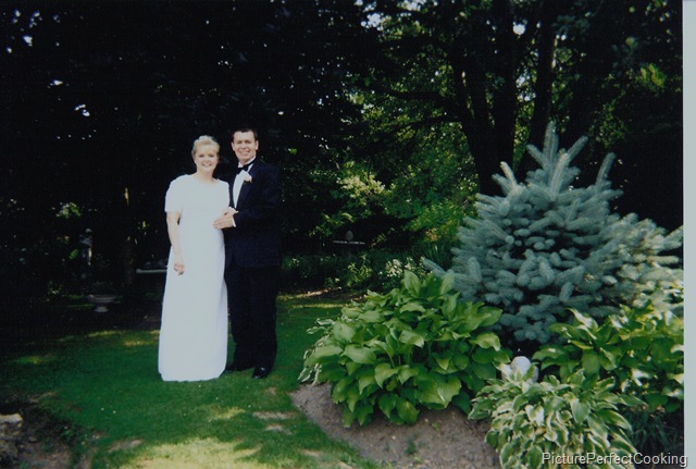This was taken in my grandmother’s back yard after our wedding. We had a small, private wedding, but it was beautiful. My mom made my wedding gown and arranged the flowers in the church. I wanted us to make my bouquet, too, but we were too nervous that there wouldn’t be enough flowers in bloom at the time.