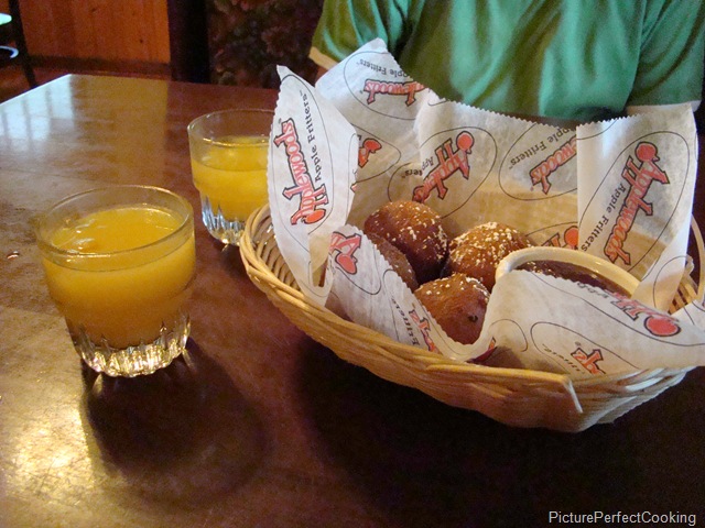We hit the outlet malls for a little while after this. One of my co-workers gave me a tip for a wonderful place to visit and eat. Before we headed back toward Kentucky, we checked it out. Boy, was I glad we did. The Apple Barn is a great place to go! They have 2 restaurants, The Applewood Farmhouse Restaurant and The Applewood Grill. We ate at the Farmhouse and it was delicious! They start everyone’s meal with an order of apple fritters with apple butter and their house “Applewood Julep” which is a combination of apple, orange, pineapple and lemon juices. So refreshing!