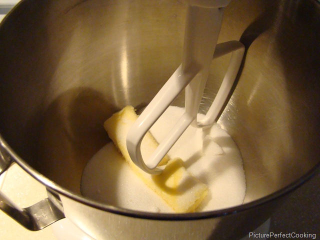 Preheat oven to 350. With an electric mixer, cream butter with the 2 sugars.