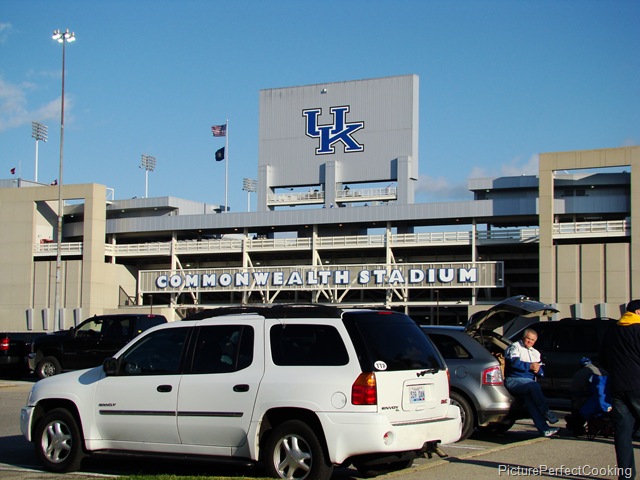 In September, C & I went to watch his alma-mater, Western Kentucky University, play. We had a great time and knew we wanted to see more. A couple of weeks ago the opportunity arose for us to go to Lexington and watch the University of Kentucky Wildcats play! What a treat this was! My whole family are life-long Big Blue fans and we have been to a few basketball games, but this would be the first gridiron appearance for us. C & I got there about 2 hours before the game started and had an opportunity to look around the tailgating areas and the stadium. Believe me, these people are serious about their tailgating!