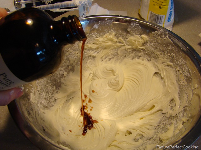 Beat cream cheese and butter until smooth.  Add sugar and mix well.  Add vanilla and stir until combined.