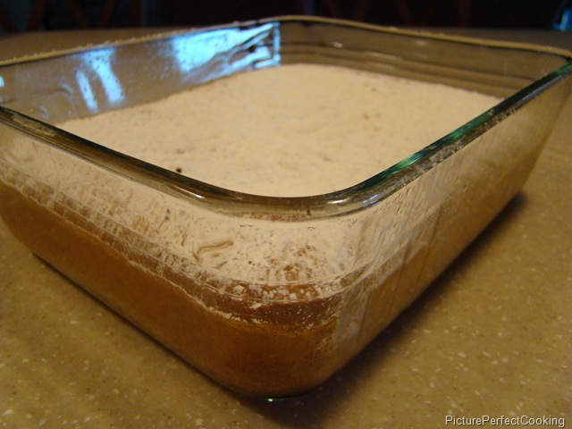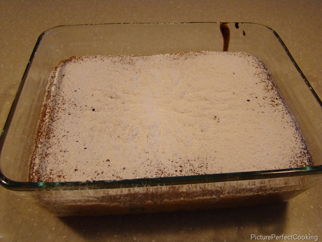 Place baking dish(es) on a rimmed baking sheet to catch any sauce that might bubble over the sides.  Bake 55-60 minutes or until wooden toothpick inserted in center of cake layer comes out clean.  Cool for 20 minutes.  Sprinkle with powdered sugar.  Spoon into serving dishes while warm.  Store any leftovers in the refrigerator.  Just warm and enjoy!