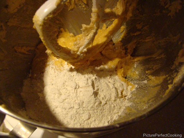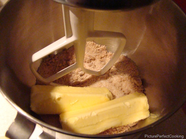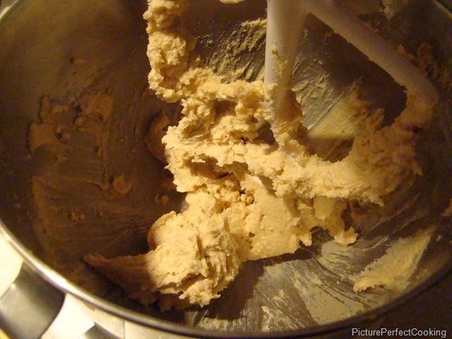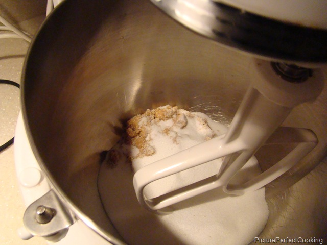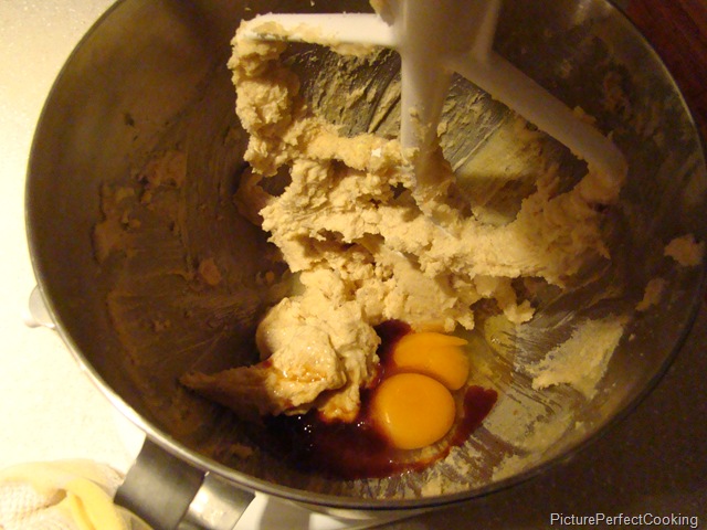 Preheat oven to 375 degrees and prepare 2 cookie sheets. I use two so one can be cooling in between batches while the other is in the oven. Mix the 2 sugars together with an electric mixer. Add softened butter and stir until creamy.