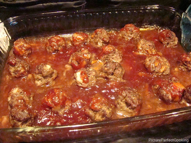 Pour the sauce over the meatballs and continue cooking for an additional twenty minutes or until the meatballs are cooked through.  These are great with noodles or dirty rice.  They are also good served with roasted potatoes and salad or as meatball hoagies.