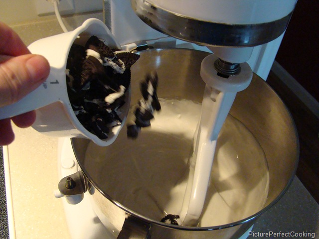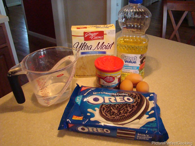 You can probably tell from this blog that I love to bake from scratch if I have time, but sometimes going the “semi-homemade” route results in some delicious goodies as well.  This is one of those times.  I was trying to decide what to fix for dessert one weekend and looked through the pantry to see what was available.  I had a white cake mix, some oreo cookies, and white or chocolate canned frosting.  I planned on making the white cake with chocolate frosting but found a neat variation on the back of the cake mix box.