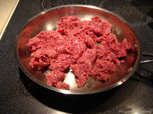 Brown the ground beef in a skillet over medium heat. When there is no pink left in the meat, pour in the taco sauce and stir to combine.