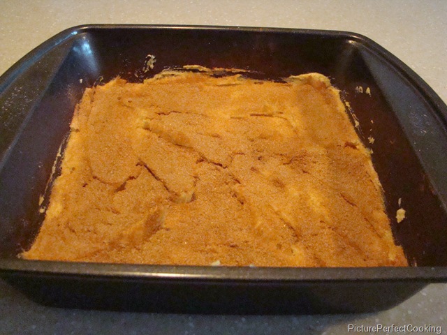 Pour dough (it will be thick) into the baking dish and smooth it into an even layer. Sprinkle dough evenly with cinnamon/sugar mixture. Bake for about 30 minutes until the bars are set and the edges are just very lightly browned. Cool in the pan before slicing.