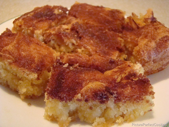 I love finding new recipes to try and cooking blogs seem to have an unending supply of ideas. This recipe came from bakingbites.com. If you have not had the chance to read this blog, I highly recommend it! It is full of wonderful recipes and beautiful, mouth-watering photos of them. These blondies have their roots in the classic snickerdoodle cookies, but they are quicker to make. Here is a little warning to the wise though: this recipe only makes enough for an 8×8” baking dish so if you are feeding a crowd, you might want to stick with the classic cookie recipe posted here: