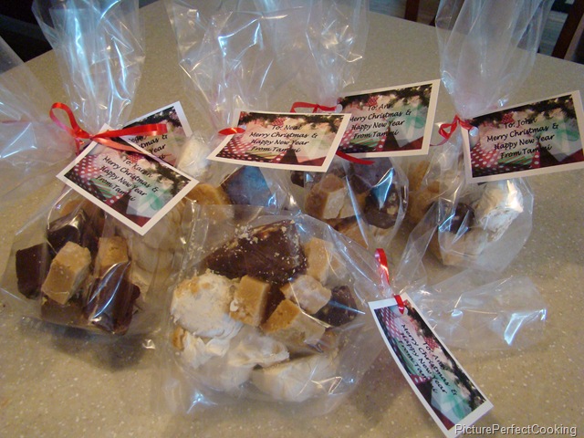 Friday: Peanut brittle (recipe coming soon), divinity (recipe coming soon), chocolate pecan fudge, peanut butter fudge, sweet potato casserole (recipe coming soon), butter roasted potatoes (recipe coming soon), Faux Red Lobster cheesy biscuits (recipe coming soon)