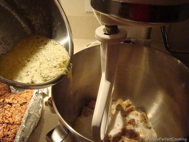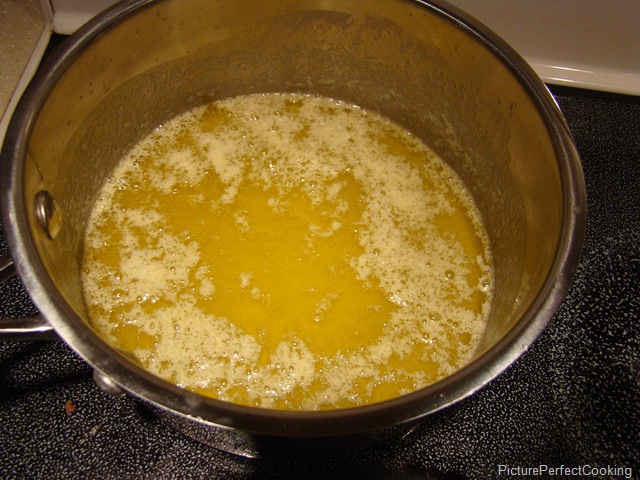 In a saucepan over medium heat, cook the butter until it turns golden brown; remove from heat and let cool while you prepare the other ingredients. (Note: I probably could have cooked the butter a little longer, but I was scared it would burn.)