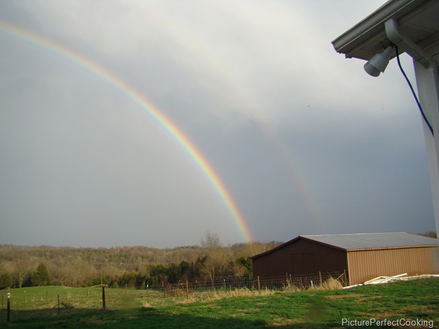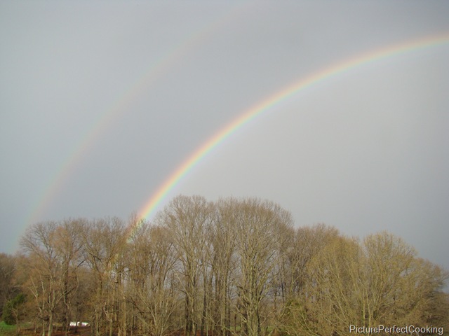 The drive home was not much better. I ran through at least two more heavy pour-downs with a little bit of hail in those, too. Just a few minutes ago, I looked out the back door and, behold, a gorgeous double rainbow!