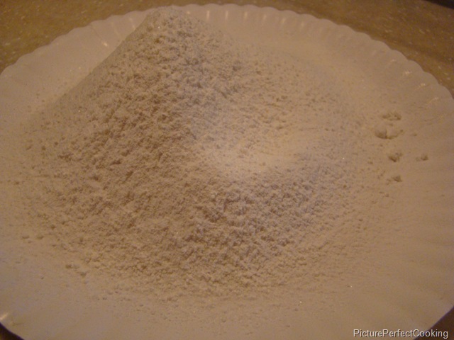 Preheat oven to 325 degrees and have ready an ungreased 7 inch tube pan (I used a 9 inch because that is was I had.). Sift together flour, baking soda, salt, and 3/4 cup granulated sugar.