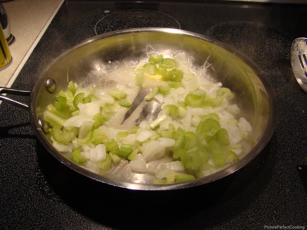 Preheat oven to 350 degrees F (175 degrees C). Grease one 9×13 inch baking dish. In a large skillet over medium heat, melt the butter and sauté the celery and onion until soft.