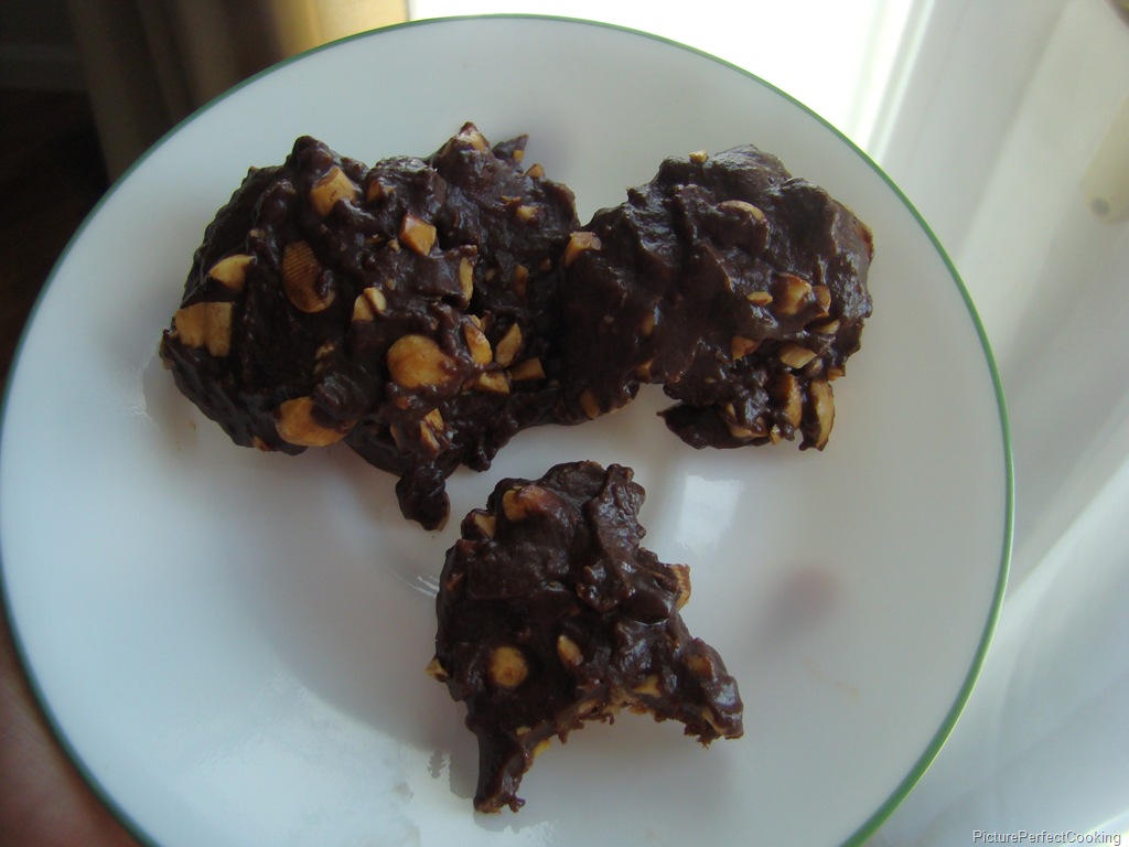 Let the mixture cool for a few minutes, then stir in the peanuts. Drop by heaping tablespoonfuls onto a waxed paper lined cookie sheet. Let these cool for about an hour and enjoy!