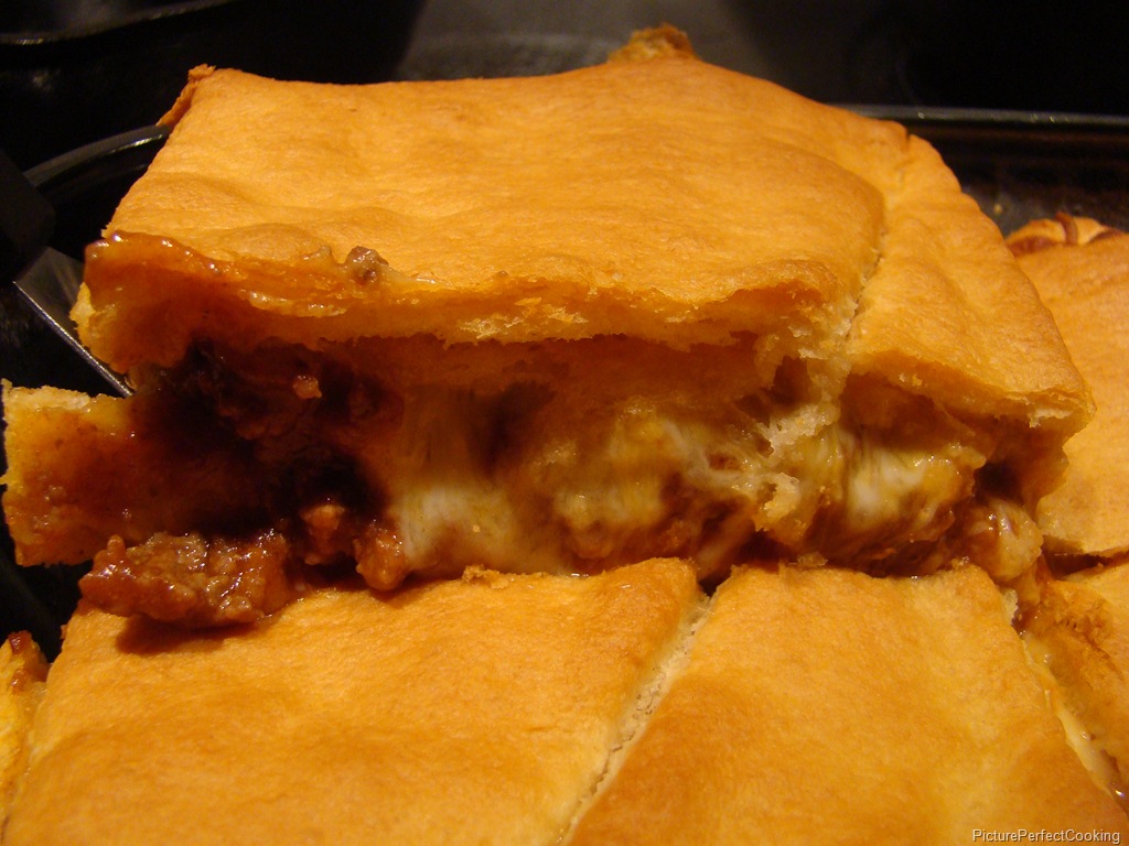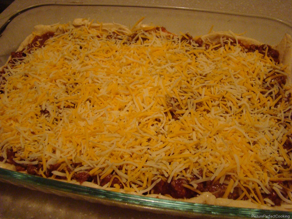 Preheat your oven to 350 degrees and spray a 13×9” baking dish with nonstick spray. Roll one can of the crescent rolls in the bottom of the baking dish. Layer the sloppy Joe mix and cheese next, then top with the remaining crescent roll dough.