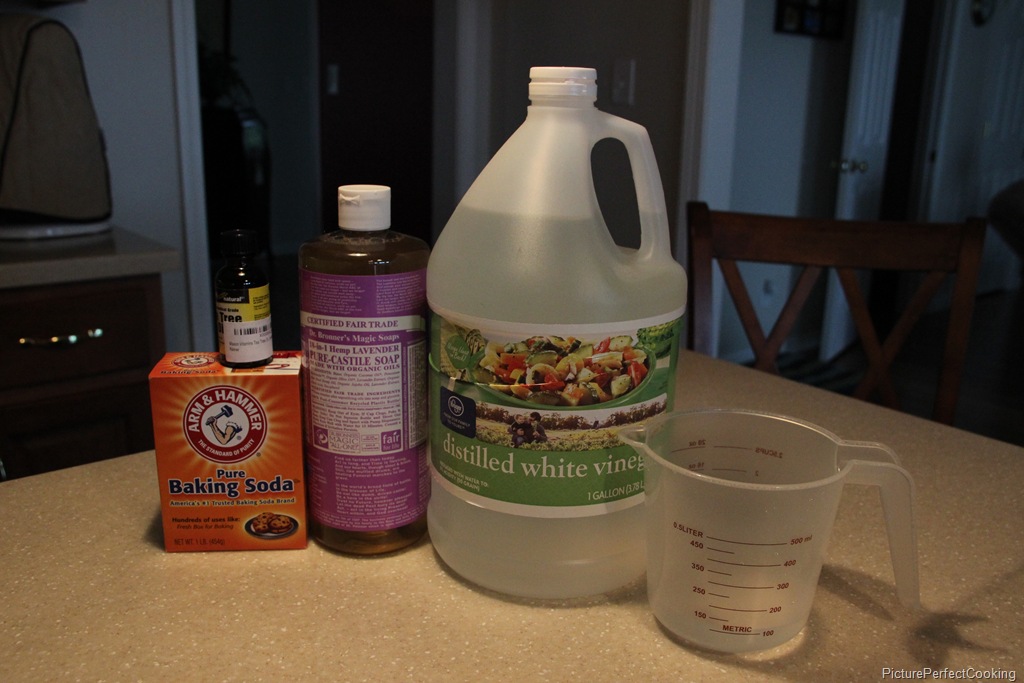 Mix all of these together in a spray bottle.  There will be a slight reaction with the vinegar and washing soda so watch out for a few bubbles.  I noticed that the ingredients will separate a little when the bottle is left alone, but all you have to do is shake it up to re-mix.