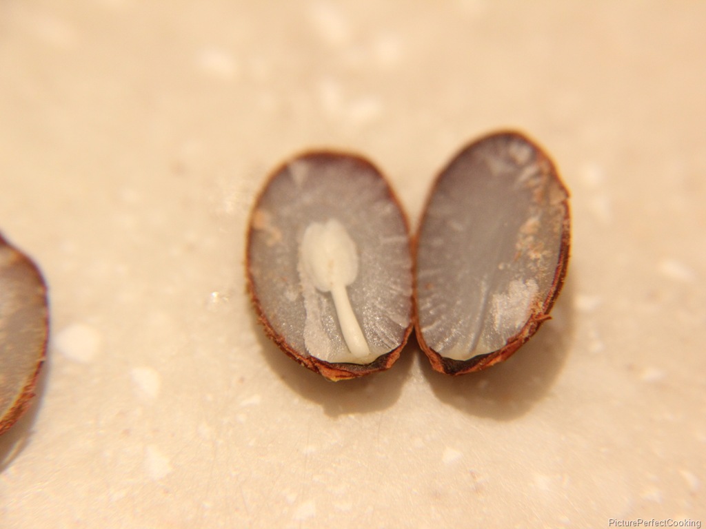 A co-worker of C’s uses Edmodo which is an online community for educators.  C uses this, too, and follows this particular co-worker on there.  He found this link to a Louisville television station and its report on the Old Farmer’s Almanac folklore of predicting winter weather using a persimmon seed on her feed.  Since we have an abundances of persimmons behind our house, C & I decided to give it a try.  Here is the premise:  slice a persimmon seed in half (not an easy thing to do…watch those fingers) and look at the membrane inside.  If it is shaped like a spoon there will be a lot of snow this winter.  If it is shaped like a knife, the winter will be very cold and windy.  A fork is what you want because it means a nice and mild winter.  Guess which one we got on all 3 seeds we checked?