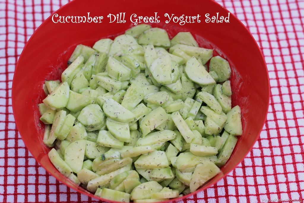 For many, many years I have made Kansas Cucumber Salad and I posted about it here back in 2009. When I saw this recipe on the awesome blog, She Wears Many Hats, it reminded me how good the Kansas Salad is. The two are very similar except that this new one is healthier since it uses Greek yogurt instead of mayo.