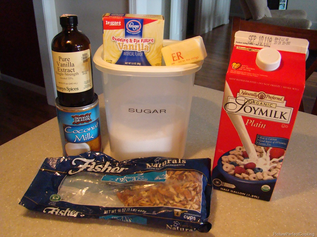 I began with Paula Deen’s regular butter pecan recipe and tweaked it to make it dairy free.  The results were very good!  I shared this with my co-workers and they said it was just as good as regular ice cream and that they couldn’t tell the difference.  Success!