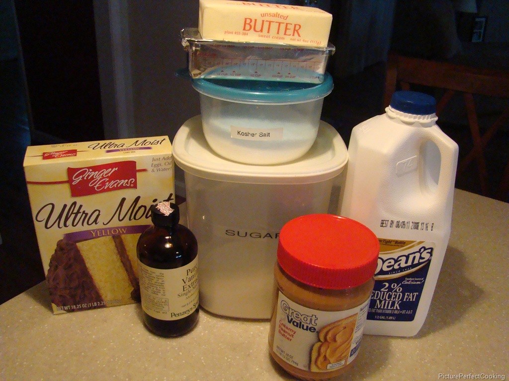 Peanut Butter Frosting: Beat 1/2 cup butter and 2/3 cup peanut butter until creamy.  Add 1 tsp. vanilla.  Slow add 2 cups confectioners sugar and mix until combined.  Add the remaining 1 tbsp. of milk and mix until smooth.