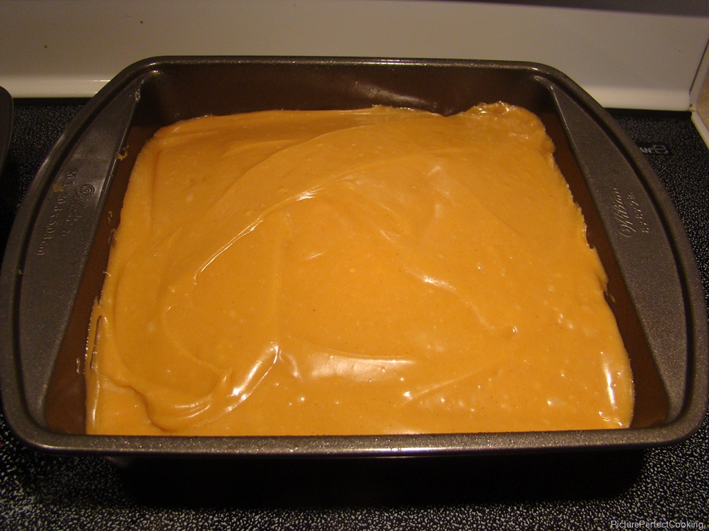Prepare the cake mix according to package directions, baking it in a 9×13” baking dish. (Note: I used 2 square 8” dishes because I was taking this to 2 different places.)