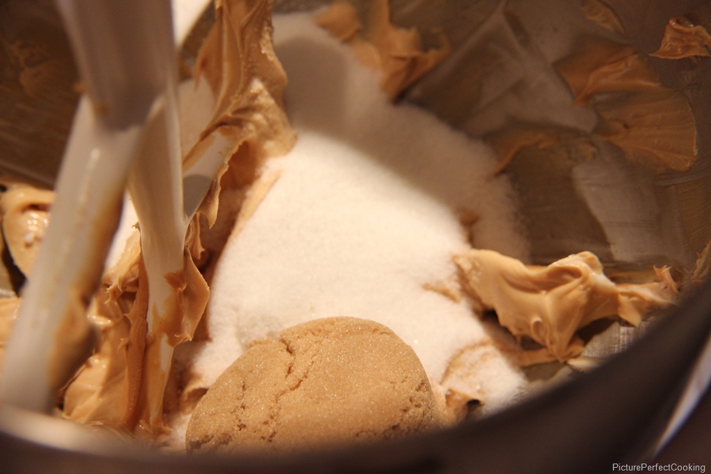 Preheat the oven to 375 degrees and prepare a cookie sheet with parchment paper or a silicone mat.  Beat shortening and peanut butter in large bowl until well blended. Add 1/3 cup granulated sugar and brown sugar; beat until fluffy. Add egg, milk and vanilla; beat well. Stir together flour, baking soda and salt; gradually beat into peanut butter mixture.