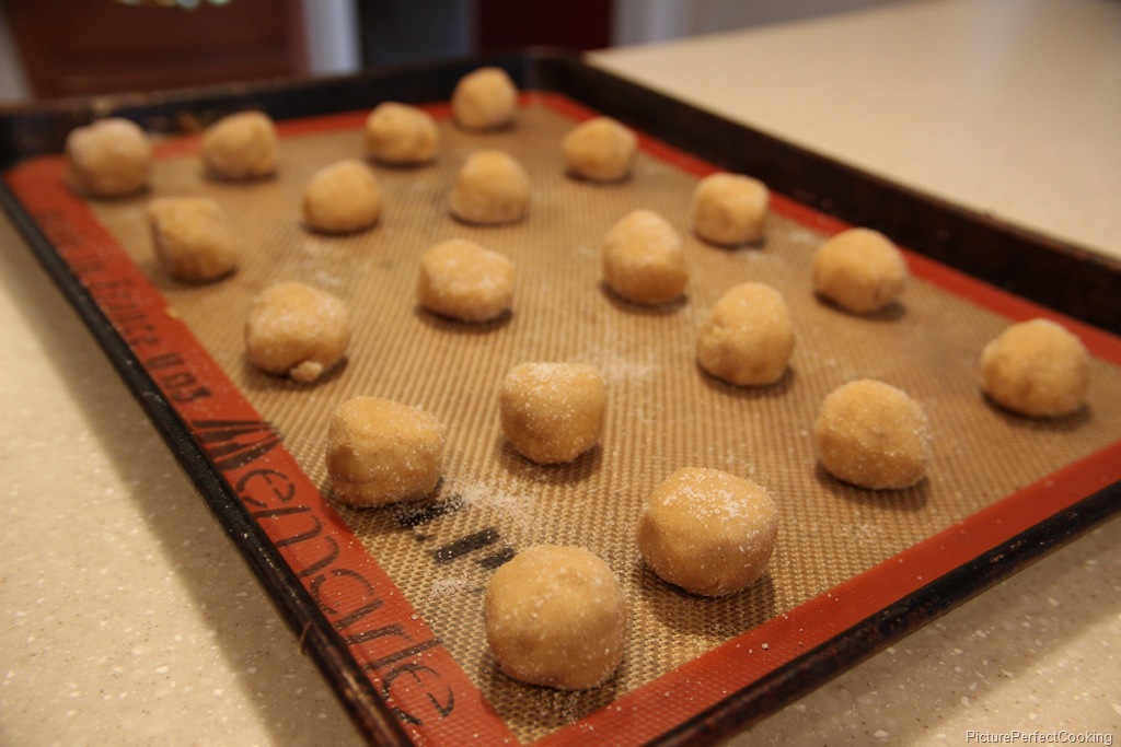 Shape dough into 1-inch balls. Roll in granulated sugar; place on ungreased cookie sheet.
