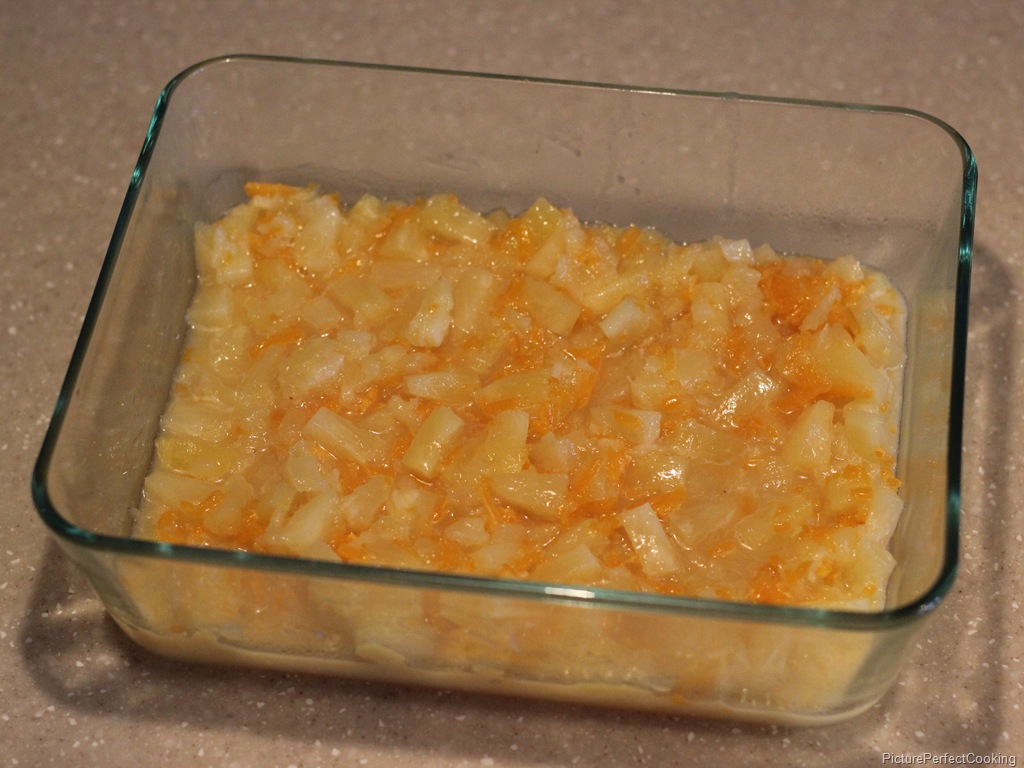 Have you ever read a recipe and think that there is no way it could be good?  This is definitely one of those.  I first tried this dish years ago when a co-worker brought it to a Christmas dinner and was hooked.  There are several different variations of this on the internet, but not this exact recipe so I don’t know where it originated before my co-worker had it.  If you like pineapple, give this a shot and I think you will be pleasantly surprised.  I could eat the whole pan!