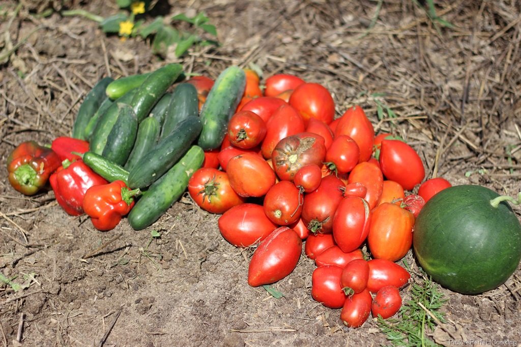 Once the rain started back, I started harvesting more and more. My cucumbers have done great and the peppers and tomatoes have really made a comeback. This is what I picked Saturday before last…