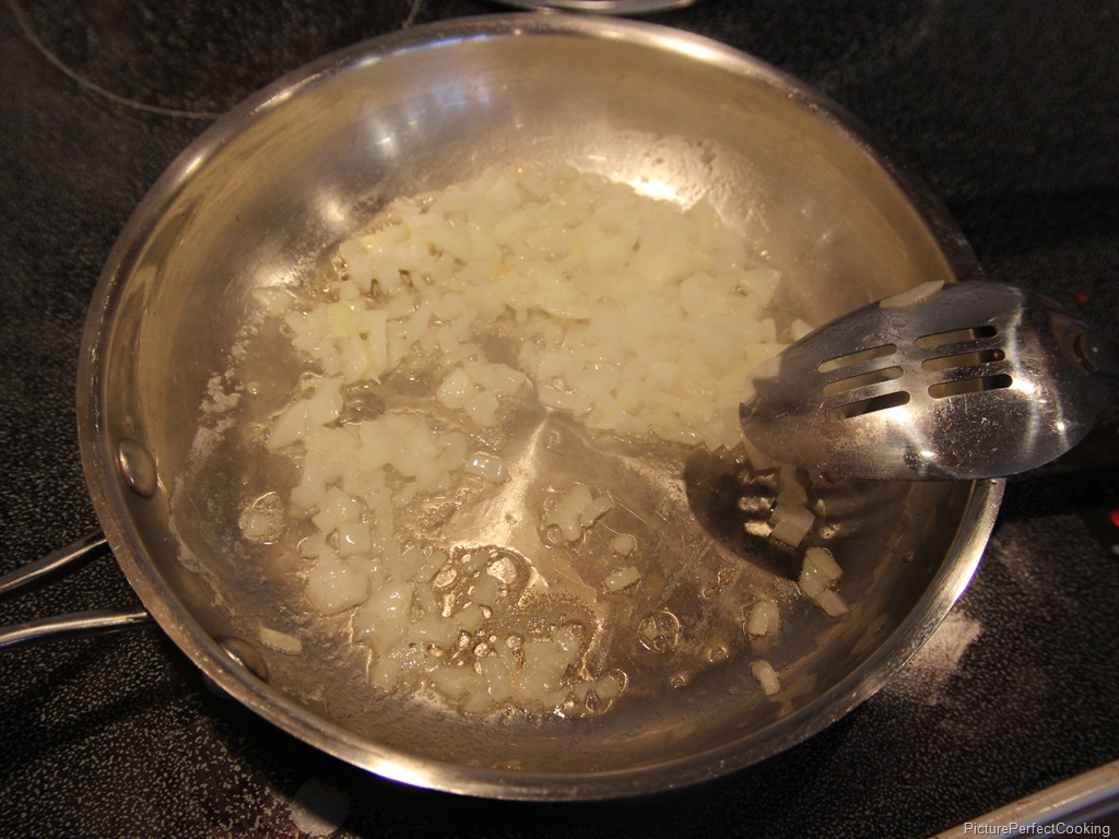Melt 1 tbsp. butter in a skillet and add the diced onion. Season with salt and pepper then cook the onions until they are golden and soft.