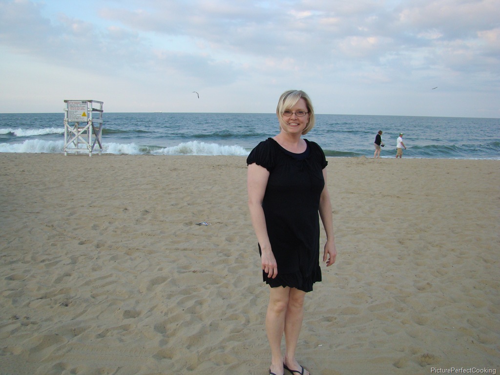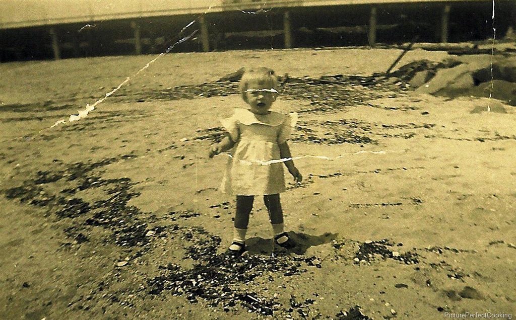 I was getting so excited and it seemed like it took forever to get to our final destination…Virginia Beach.  Why was Virginia Beach so special that we picked it for our first ocean view ever?  There are a few reasons.  One was that C wanted to see Foamhenge and it was along the way there.  Another is that my Mom played on the shores of Virginia Beach when she was just a toddler.  My grandfather was in the Army and stationed near Williamsburg, so he, my Nanny, and Mom (my Aunt M wasn’t around yet) would go to the beach and play.  Nanny has always talked about being there and I thought it would be a special thing to walk where they walked when they were at the ocean, and it was.  I felt Mom’s presence with me on numerous occasions and I so wished that I could talk to her in person to tell her I got to go, but deep down I know she knows everything that we got to experience.  Here is a photo of my mom at Virginia Beach…