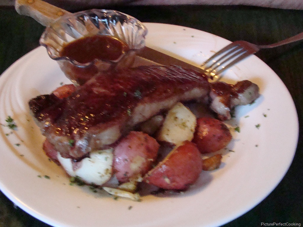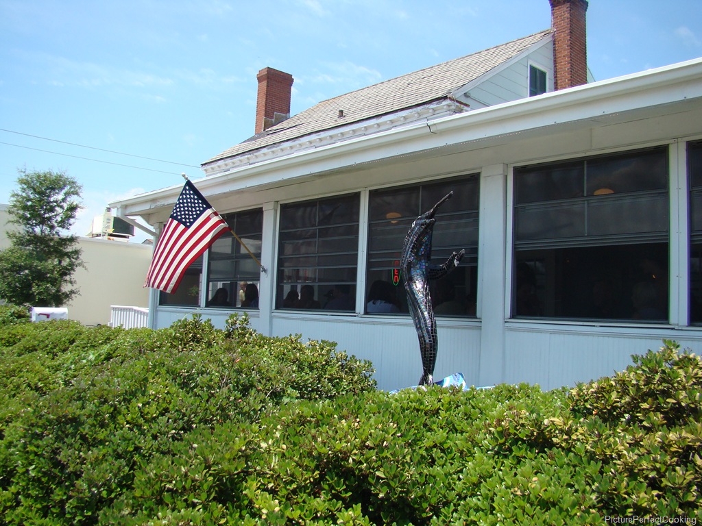 For our anniversary dinner that night, we went to Doc Taylor’s sister restaurant, Tautog’s.  This was a Tuesday evening and the place was packed.  We had to wait about 45 minutes to get a table.  We were seated in the screened-in porch back to back with many other diners.  The food here was good but a little too pricey for what you get.  I think they should at least throw in a salad or bread to go with the main entrée.  C had their Steak au Poivre with roasted potatoes and I had the Wesley’s World Famous crab cakes with roasted potatoes.  Good, but expensive.