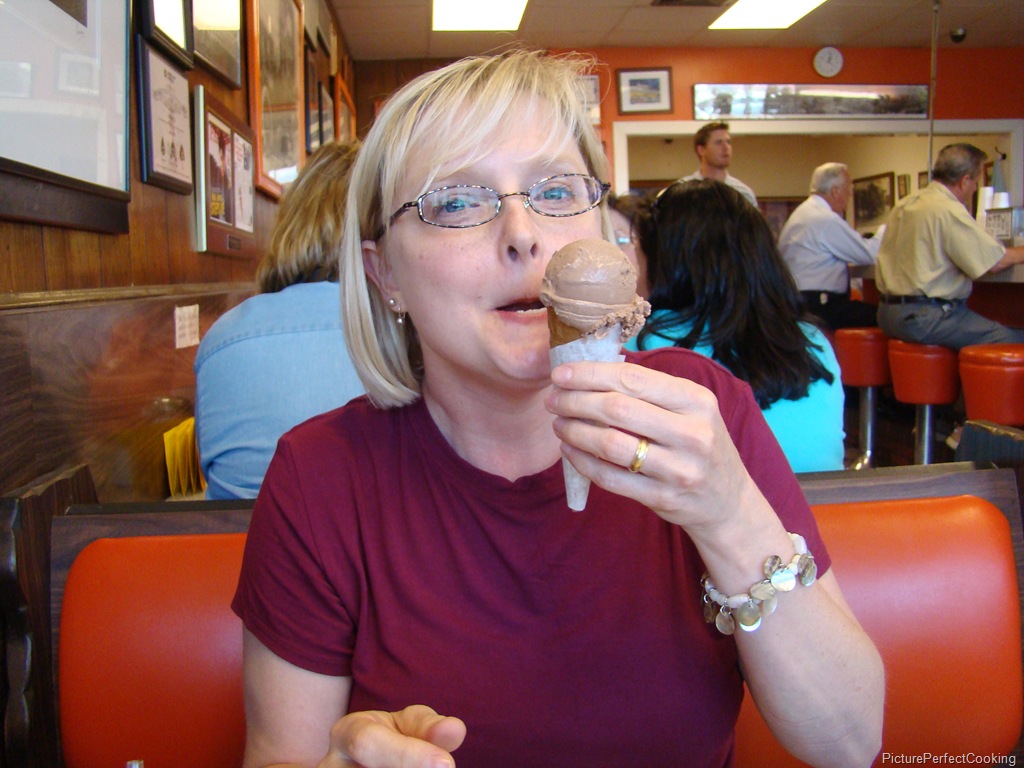 C had a cheeseburger with fries and I had their shredded BBQ sandwich with slaw and fries.  The food was great and the best was yet to come.  C & I both ordered a chocolate ice cream cone and it was soooo good!!!!