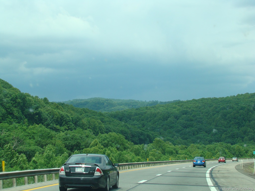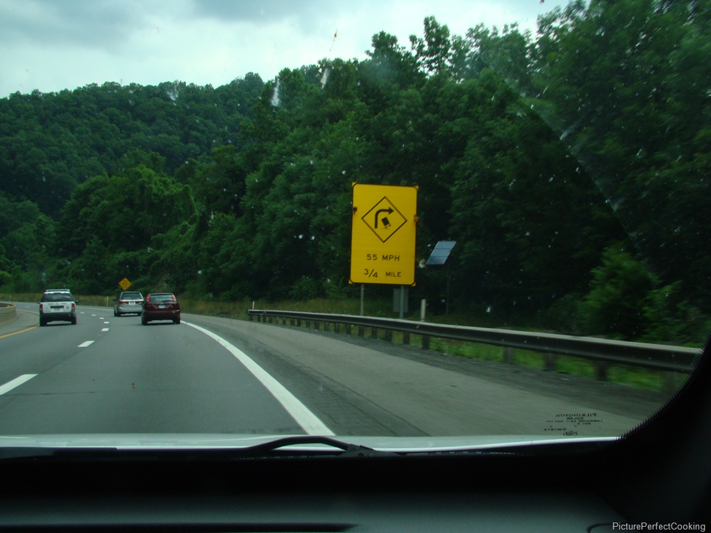 This was the first time that I had travelled through West Virginia and it was an eye-opening experience.  The interstate was like a roller coaster.  We would go up, up, up and the go down, down down.  Usually I don’t have any trouble pulling hills with my little SUV even with the cruise control on, but these weren’t just hills.  After one particularly steep incline where I had to take the car out of cruise and creep up the “hill”, there was sign that read Sandstone Mountain.  No wonder my little car was taking its time going up!